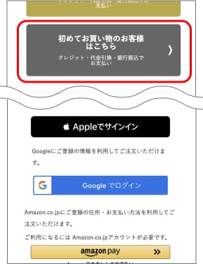 ※Apple、Google、amazonのアカウントを使用してご注文をされる場合は、該当のボタンを押し、画面の指示に従ってください。